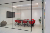 Het gebouw beschikt over een totale oppervlakte van 366 m², verdeeld over het gelijkvloers en een mezzanine. De inrichting omvat ruime bureelzones, vijf afgescheiden vergaderruimten, vier toiletten, een volledig uitgeruste badkamer en twee compacte opslagruimten. Buiten geniet je van zes vaste parkeerplaatsen, aangevuld met extra parkeermogelijkheden tot in totaal twaalf plaatsen.