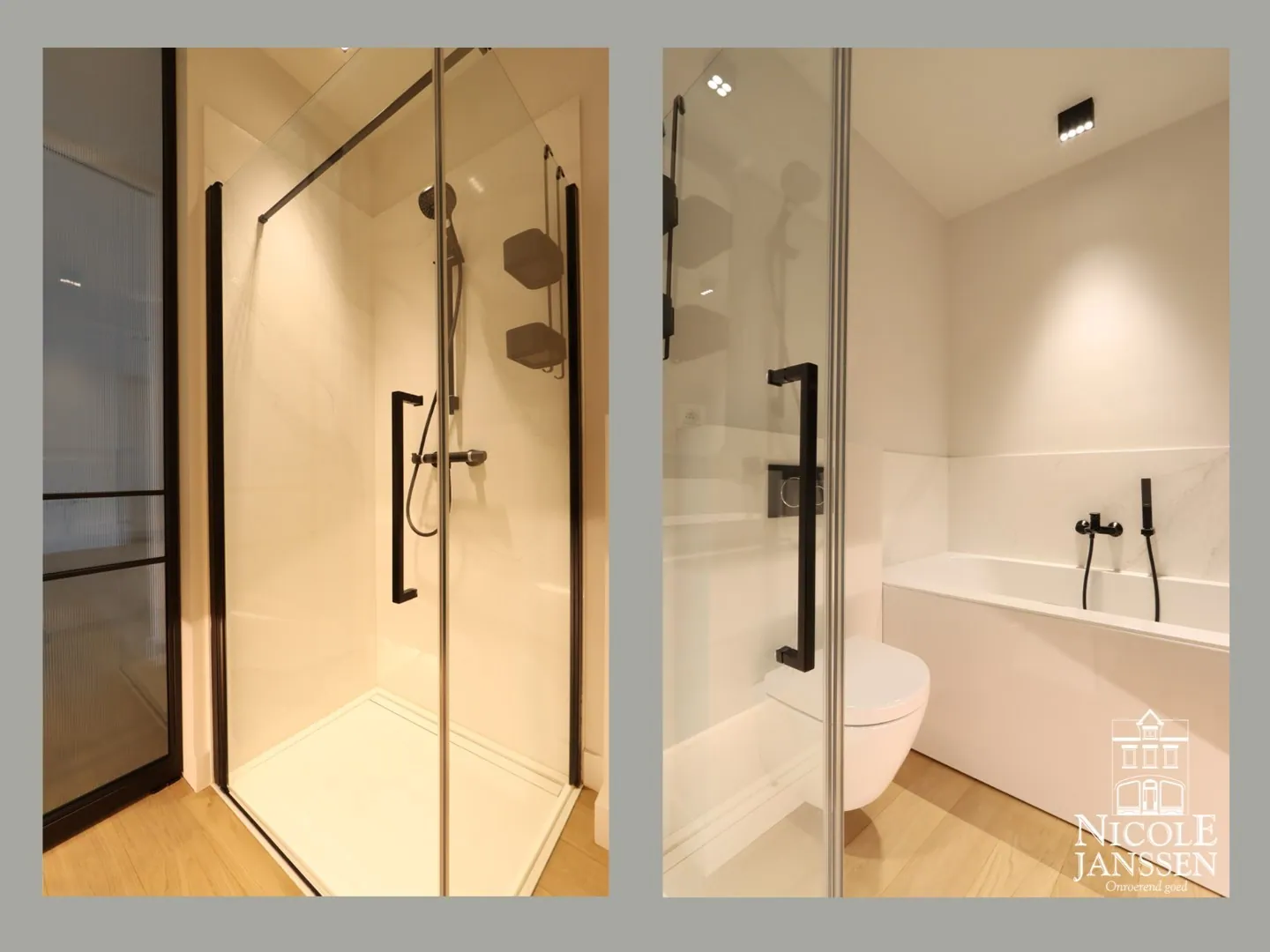 - Complete badkamer met ligbad, douche, toilet en twee wastafels, alles voorzien van maatwerk