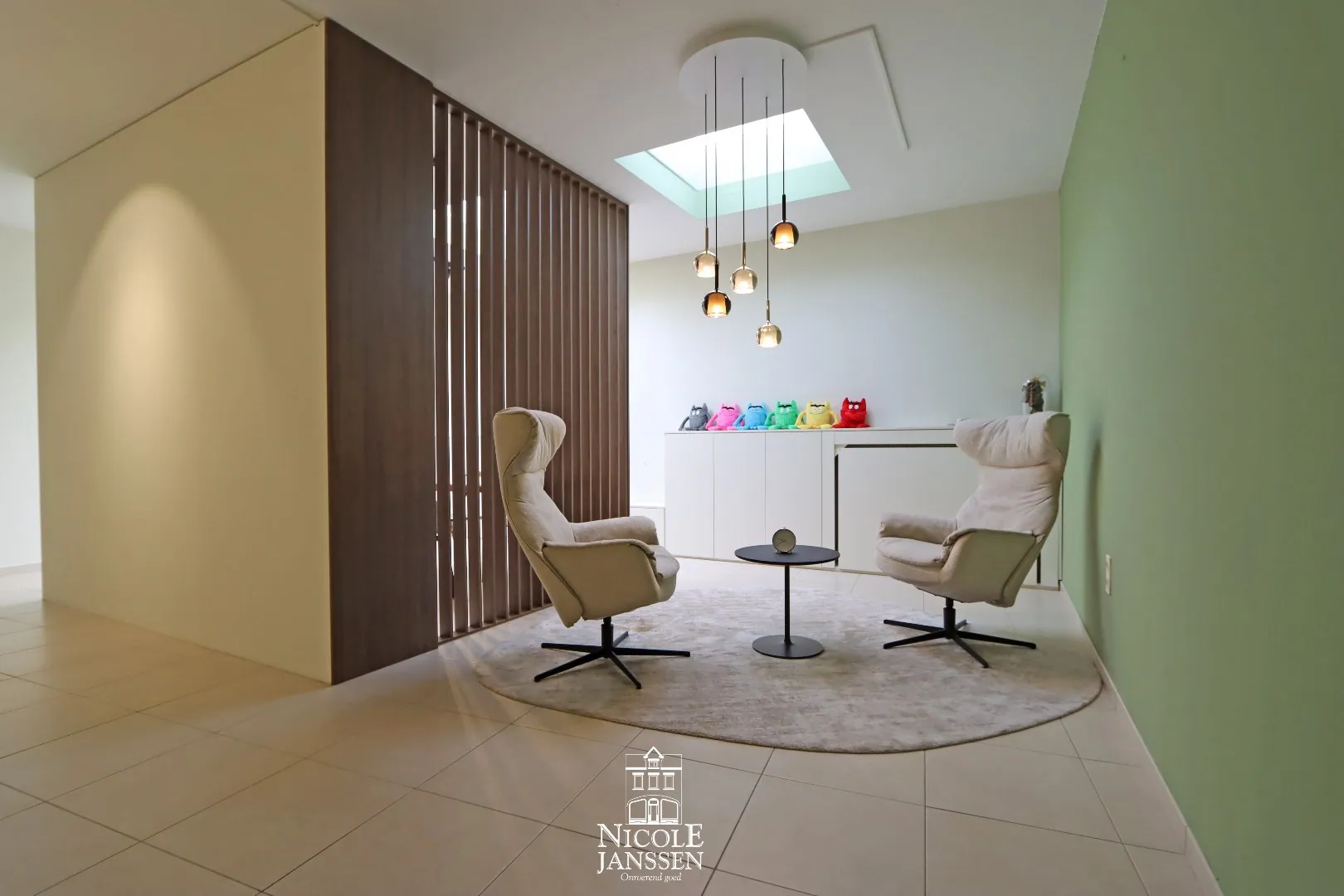 Bij binnenkomst is er aparte ruimte met loket waar klanten zich eventueel kunnen melden. Via de hal met apart gastentoilet bereikt u de mooie open ruimte met ... veel daglicht. De naastgelegen keuken is ingericht met een keramische kookplaat, afzuiging, koelkast en spoelbak en is tevens voorzien van een ruime berging.