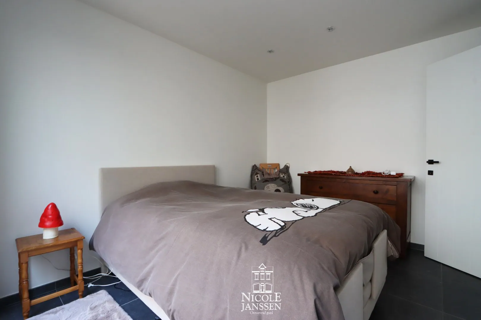 - Slaapkamer met tegelvloer en toegang naar binnenterras