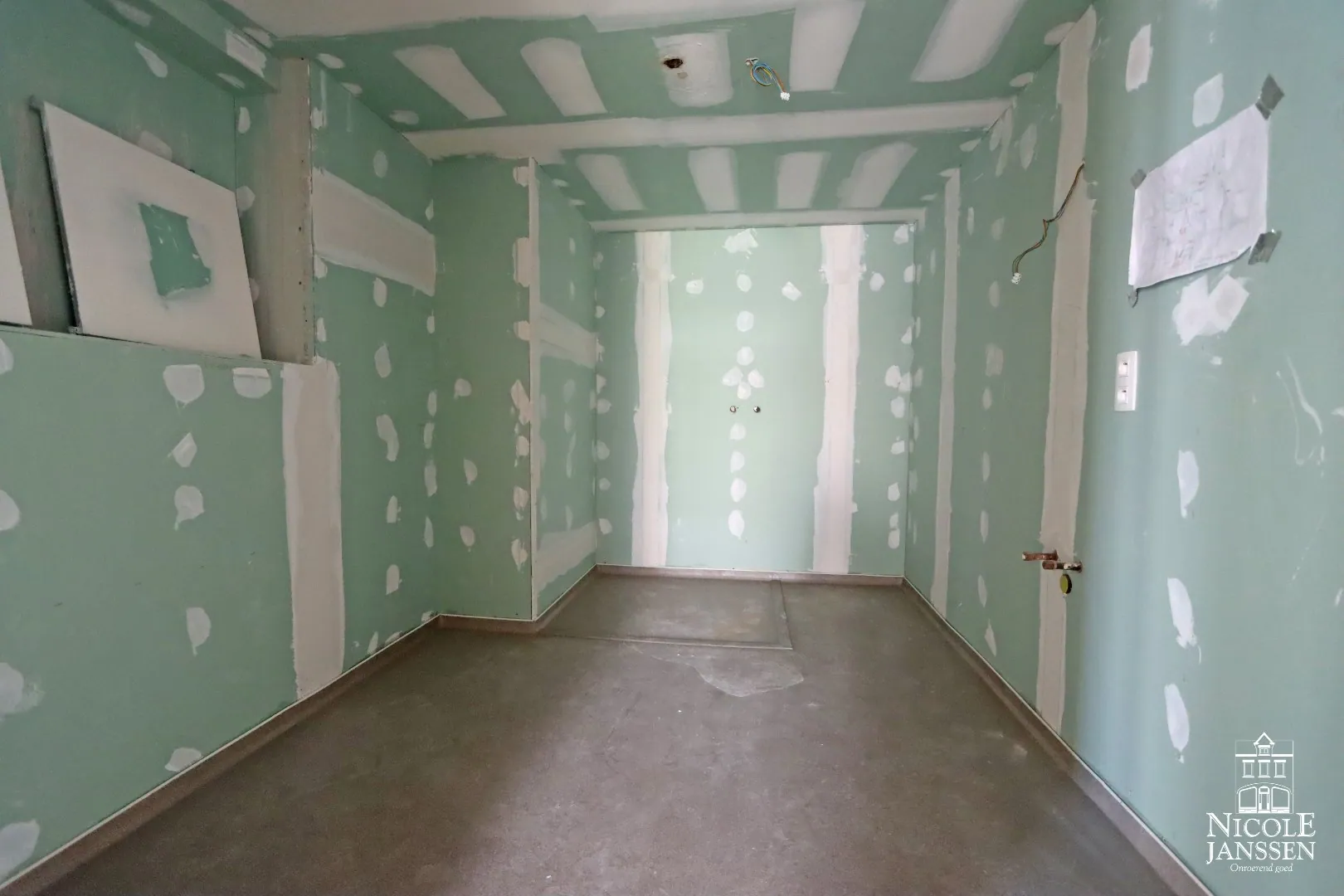 - Badkamer met inloopdouche, toilet, dubbele wastafel in badkamermeubel en aansluiting voor wasmachine en droogkast