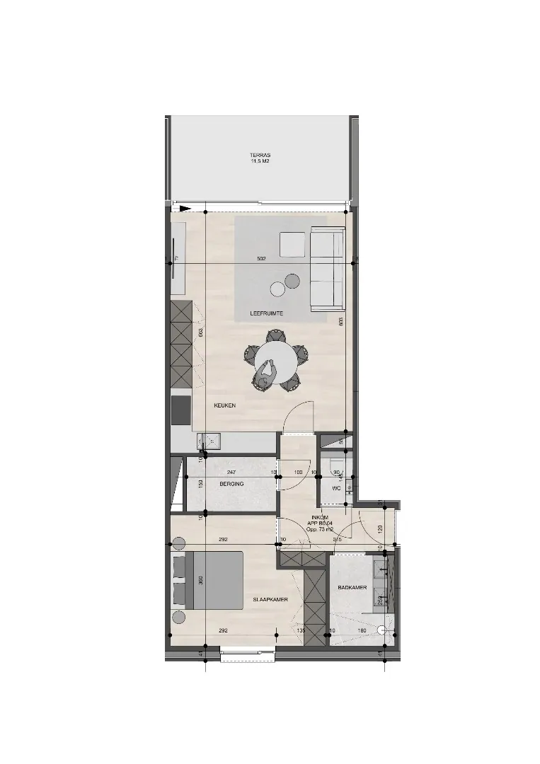 Gelijkvloers appartement van 73m² met één slaapkamer