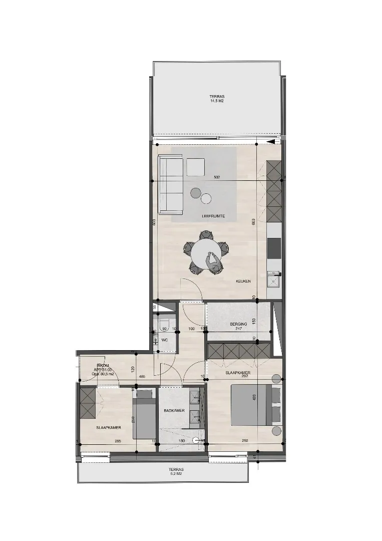 Appartement op de 1ste verdieping van 80,50m² met twee slaapkamers