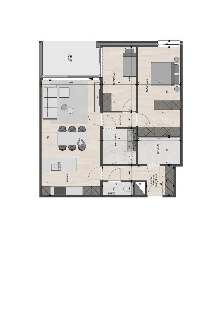 Gelijkvloers appartement van 94,10m² met twee slaapkamers