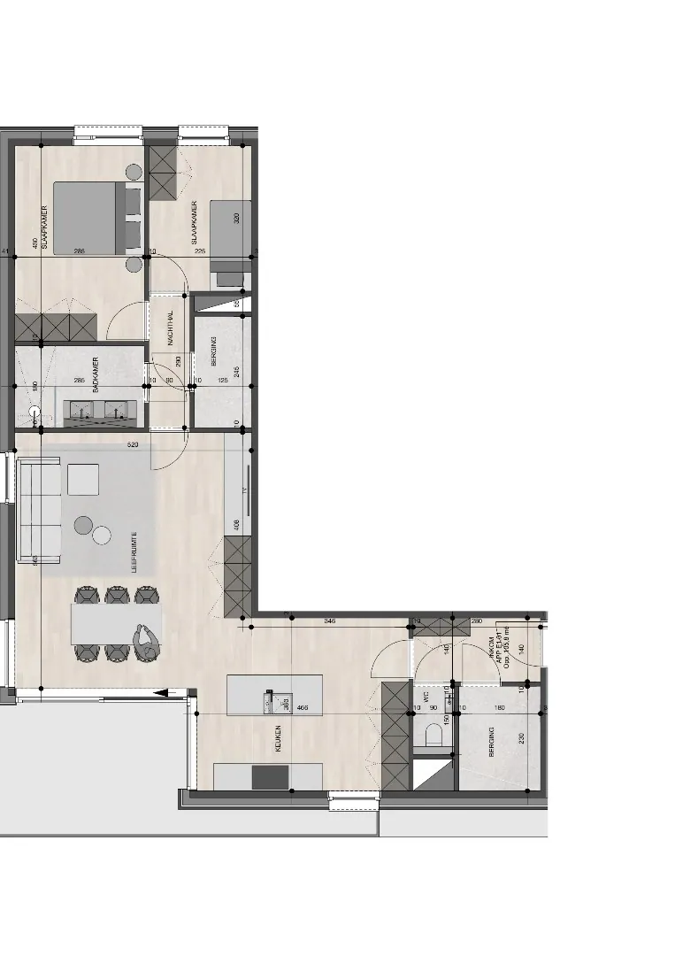 - Uitgebalanceerd ventilatiesysteem type D zorgt voor continu gezond binnenklimaat in het appartement