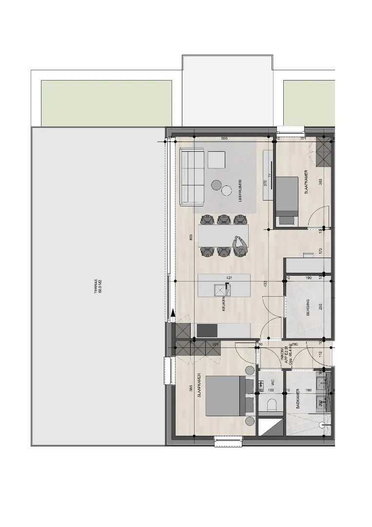 - Parkeerplaatsen (verplicht 1 parking per appartement bij te kopen)