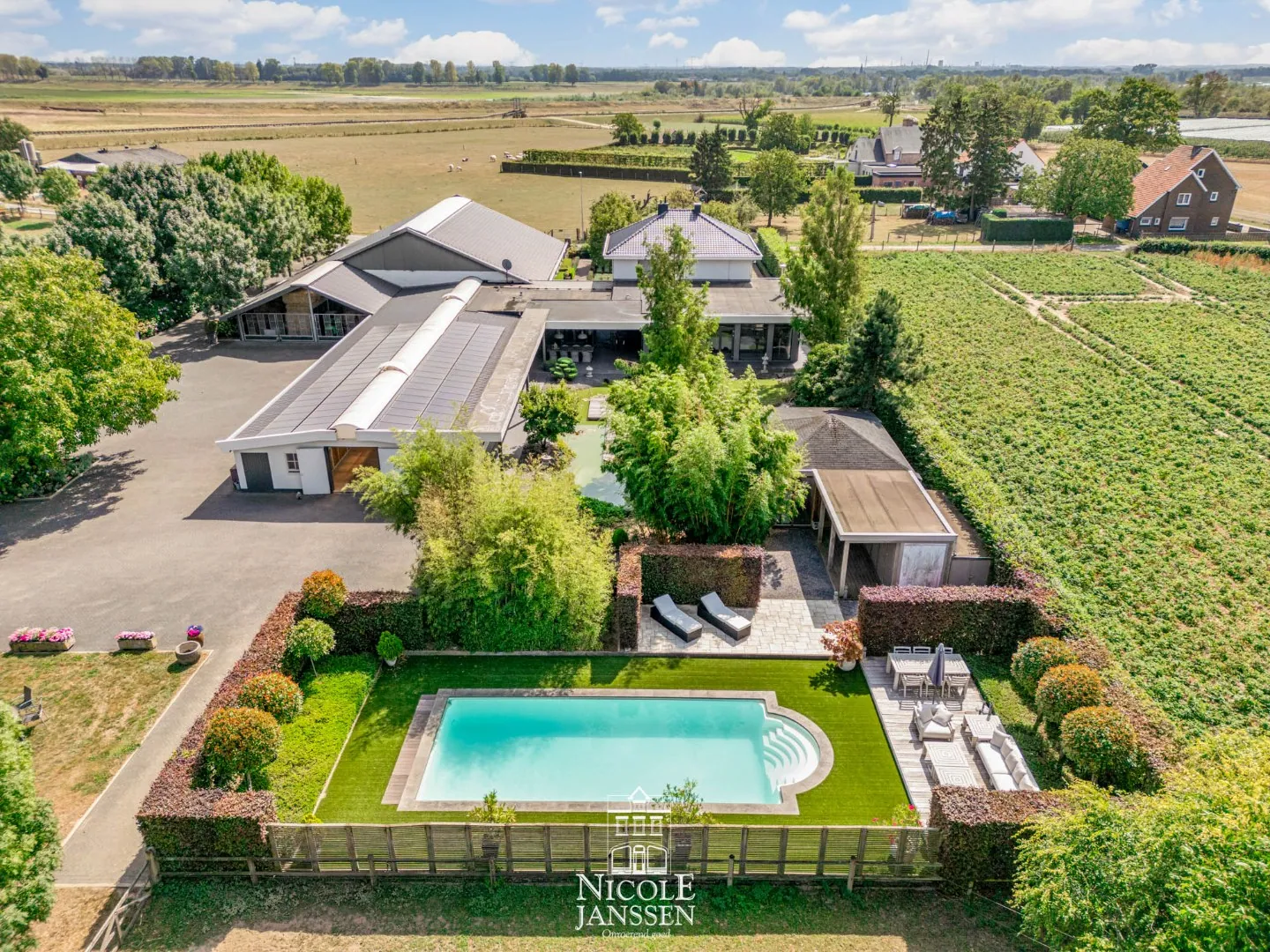 vergunde accommodatie voor 17 paarden, waaronder 10 boxen. Voorzieningen zoals een overdekte longeerpiste, een buitenlooppiste van 62 x 25 meter en automatische beregening op grondwaterputten met zuiveringsinstallatie maken dit geheel tot een bijzonder functioneel en professioneel uitgebouwd paardencomplex.