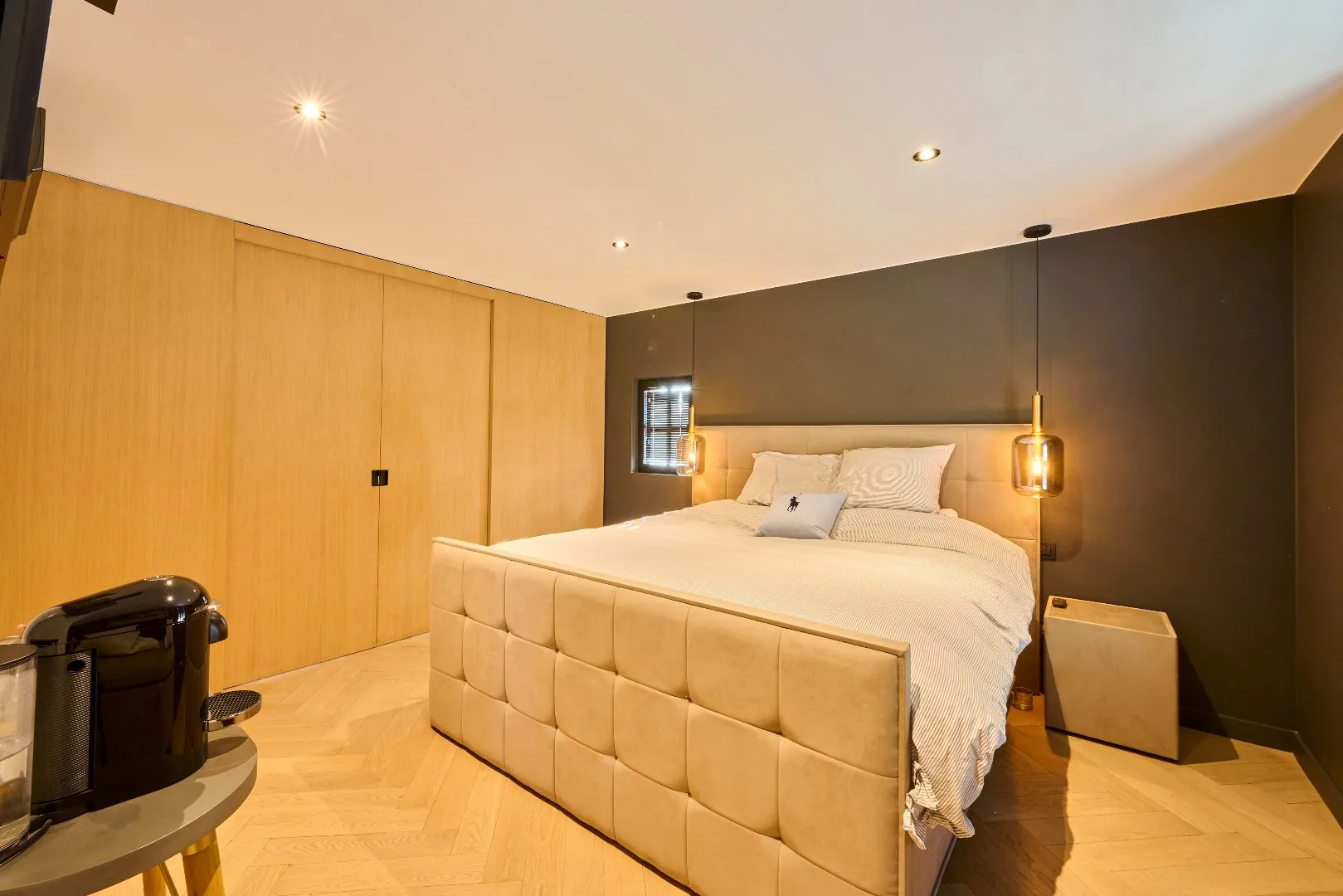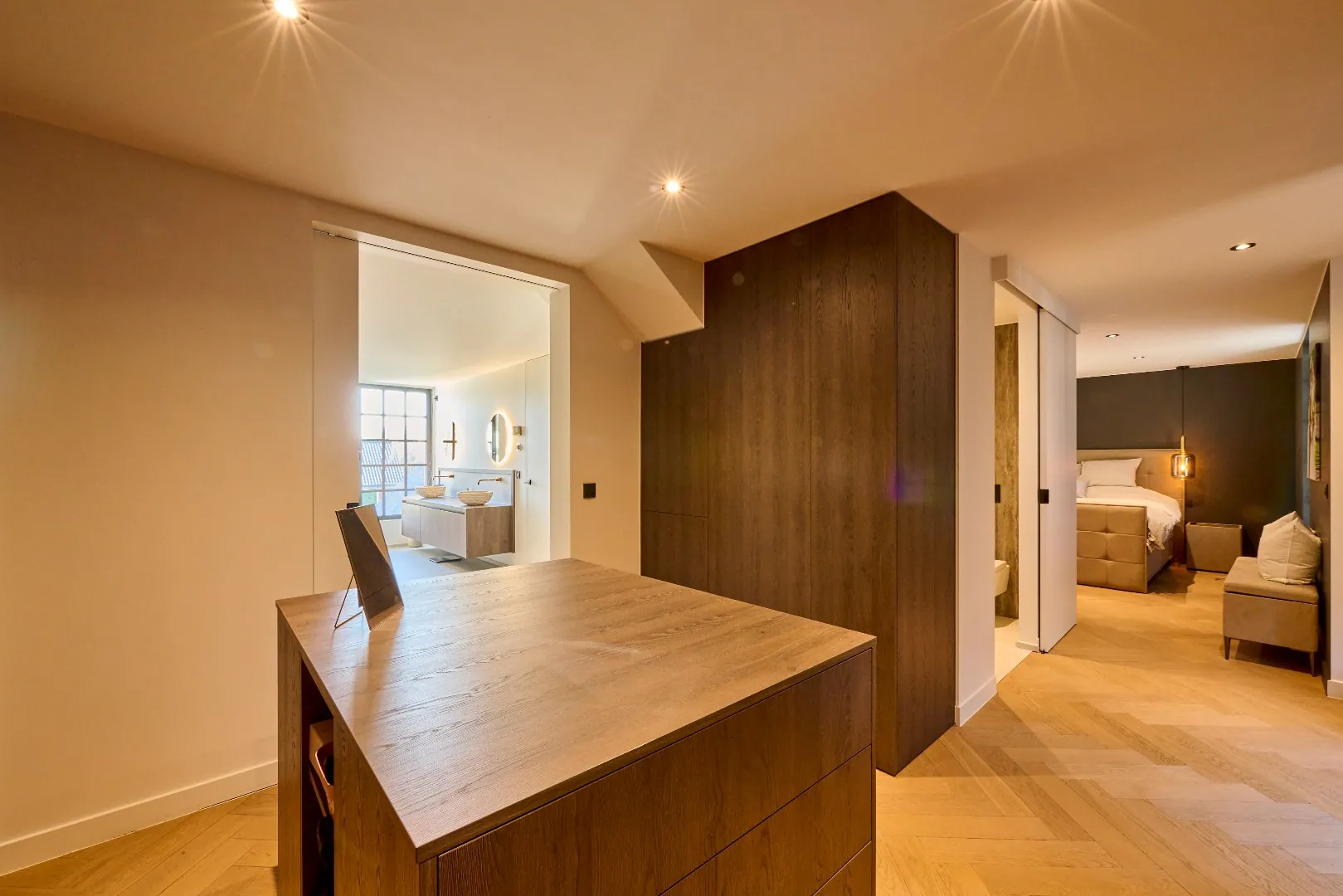 - Master bedroom met ruime dressing en apart toilet, volledig af te sluiten met stijlvolle schuifwanden