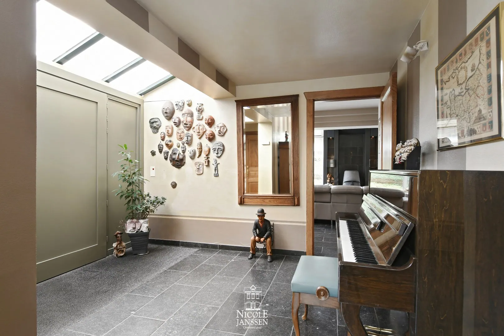 - Ruime inkomhal met blauwe steen en gastentoilet met fonteintje