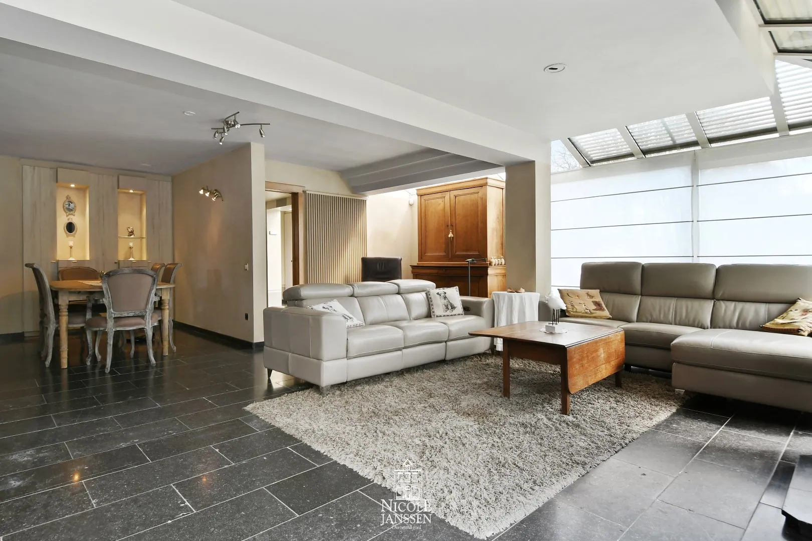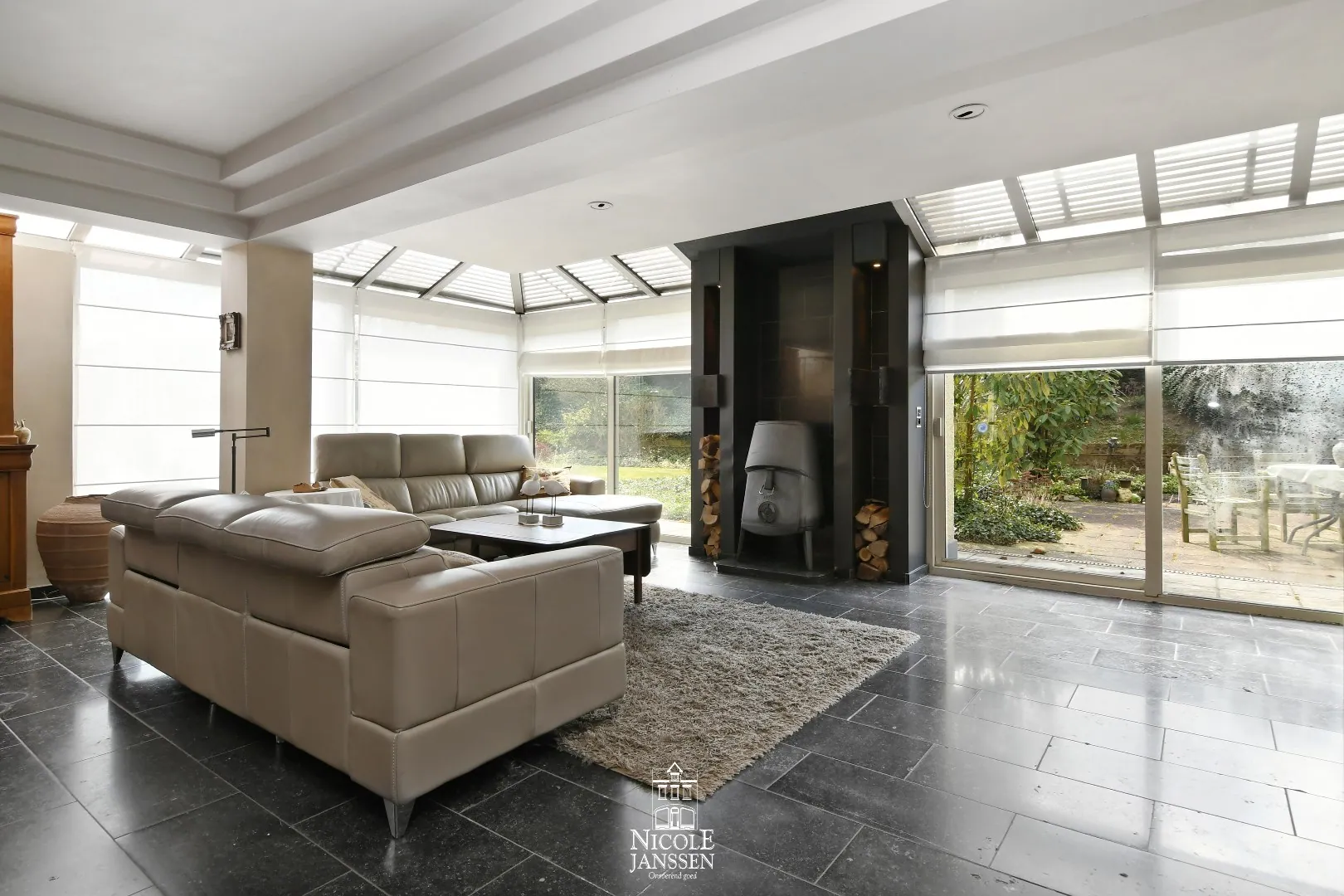 - Open leefruimte met veel natuurlijk lichtinval door de grote raampartijen