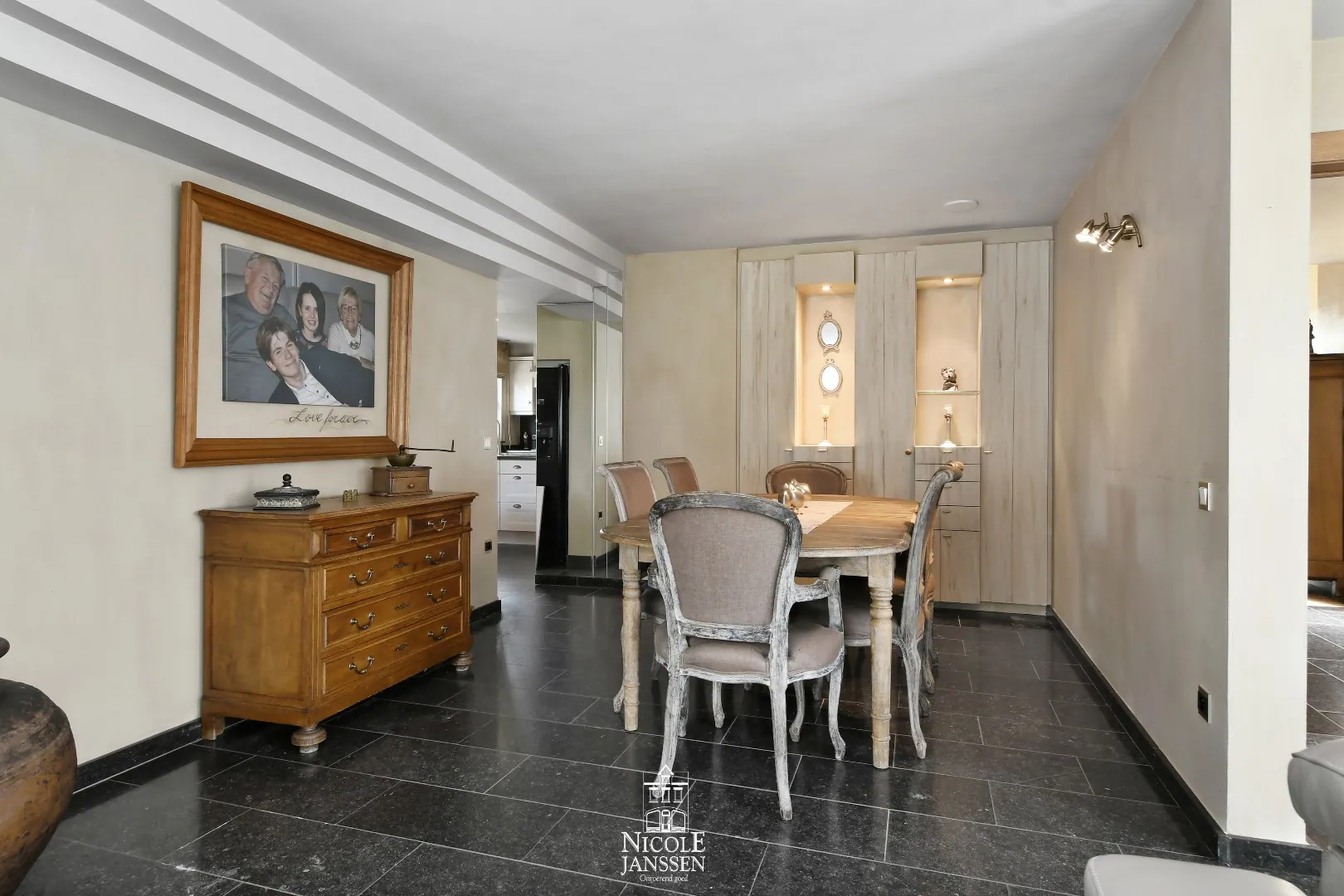 - Aansluitend bij de woonkamer vindt u deze eetkamer