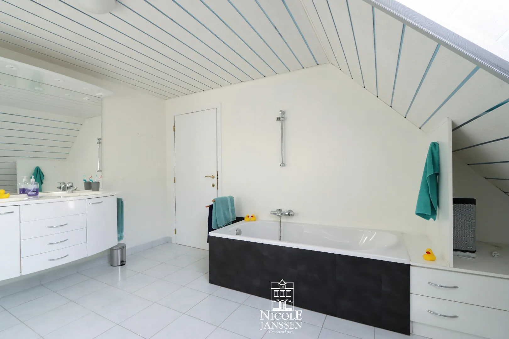 - Grote badkamer met ligbad, douche en dubbele wastafel