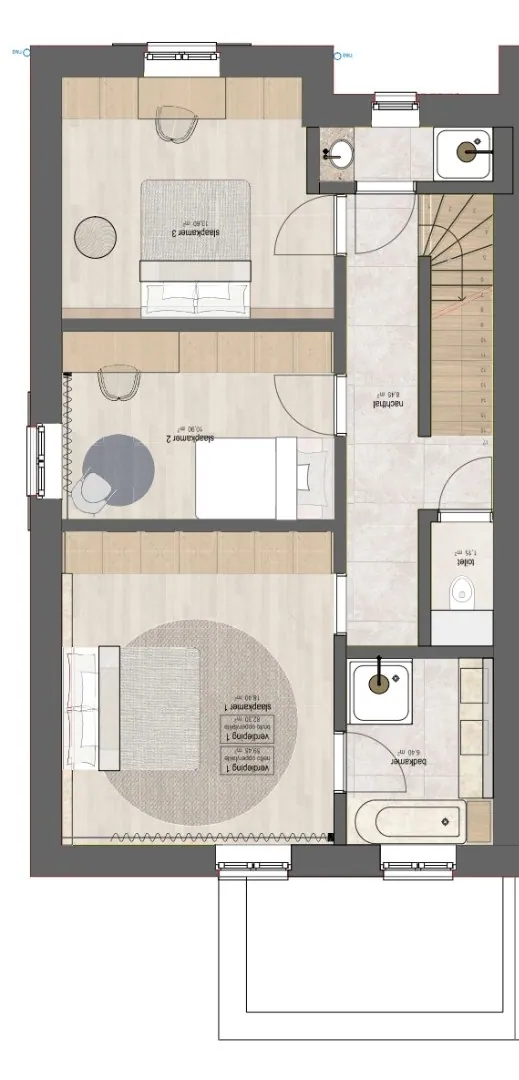 - Drie slaapkamers
