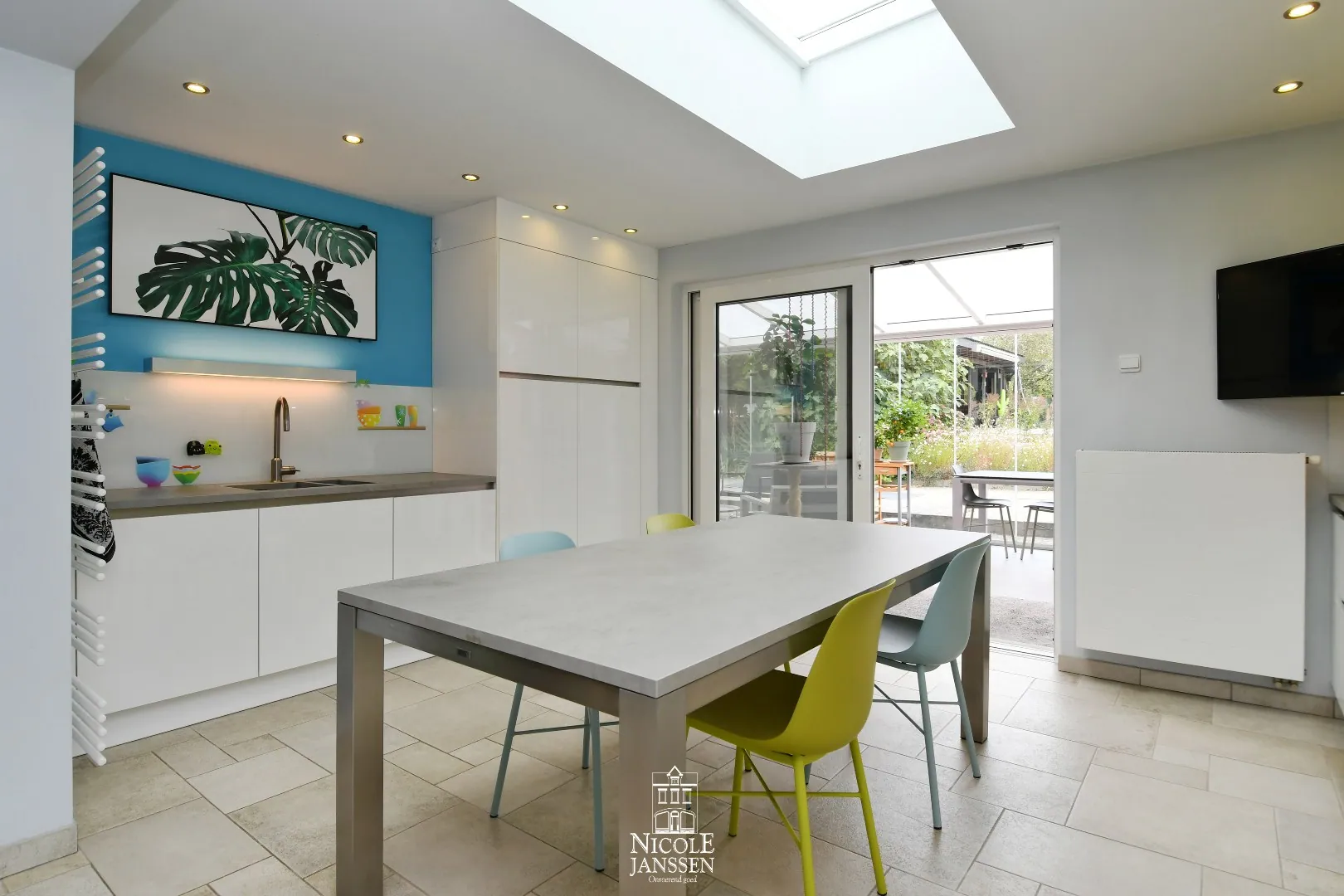 - Aansluitend is er een tweede gedeelte in de keuken, ideaal als een leuke eetruimte met vaste kasten en toegang tot de veranda