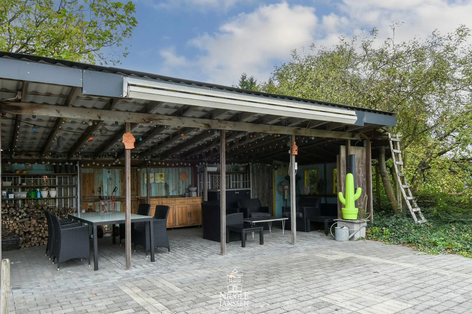- Gezellig en ruim overdekt terras met grote zonneluifel