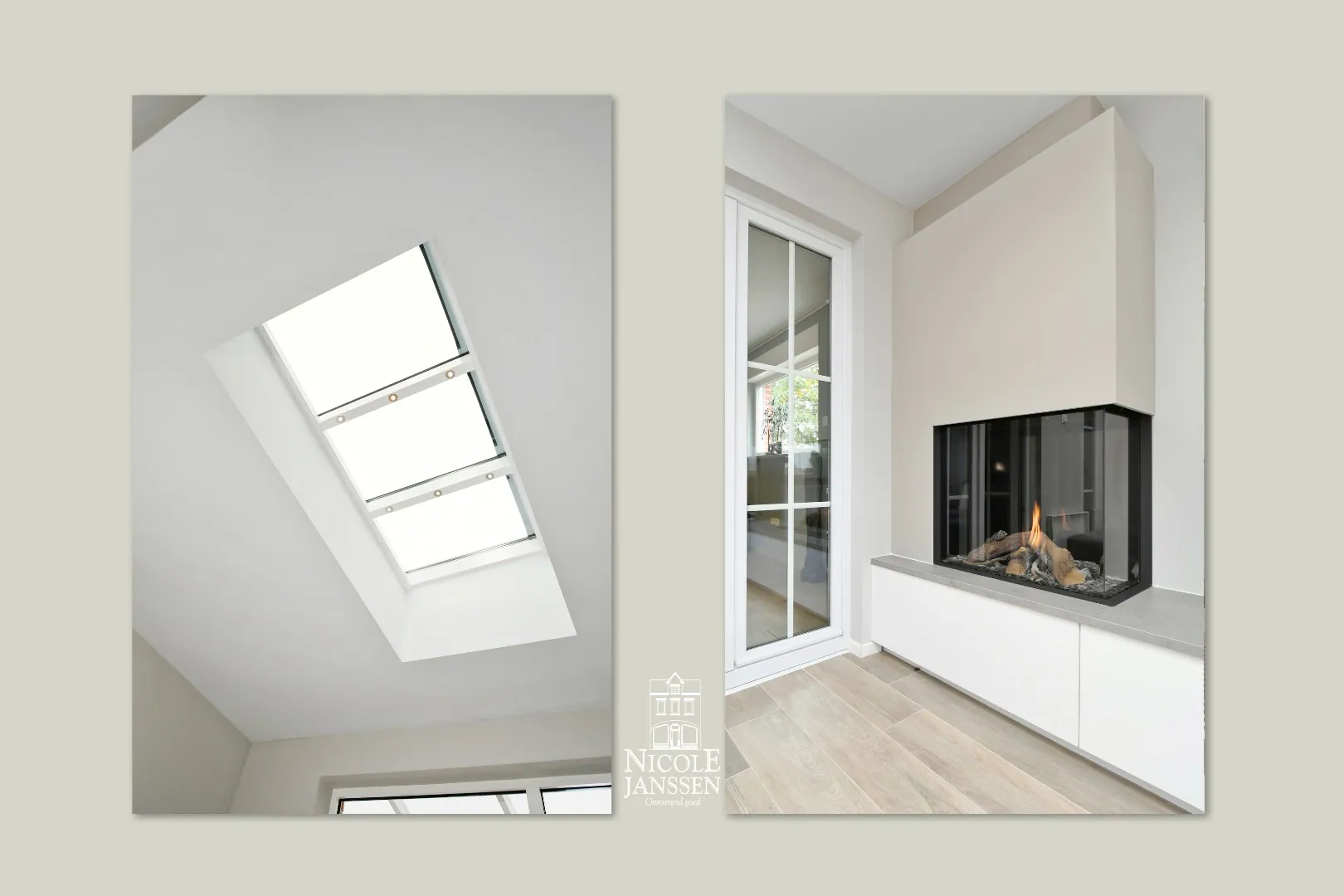 - Gezellige aparte tv-kamer met gashaard en lichtkoepel