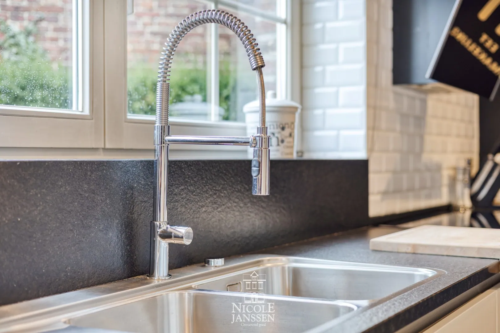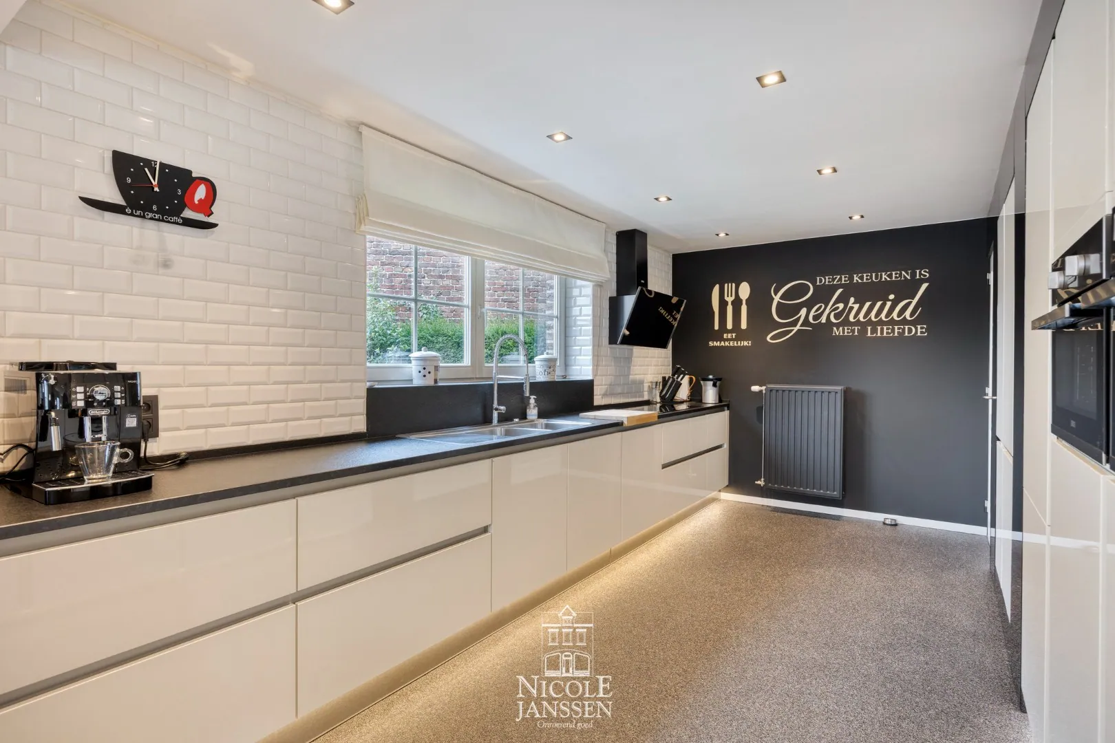 - Volledig ingerichte luxe keuken met afzuigkap, koelkast, diepvries, oven (combi), microgolfoven en spoelbak