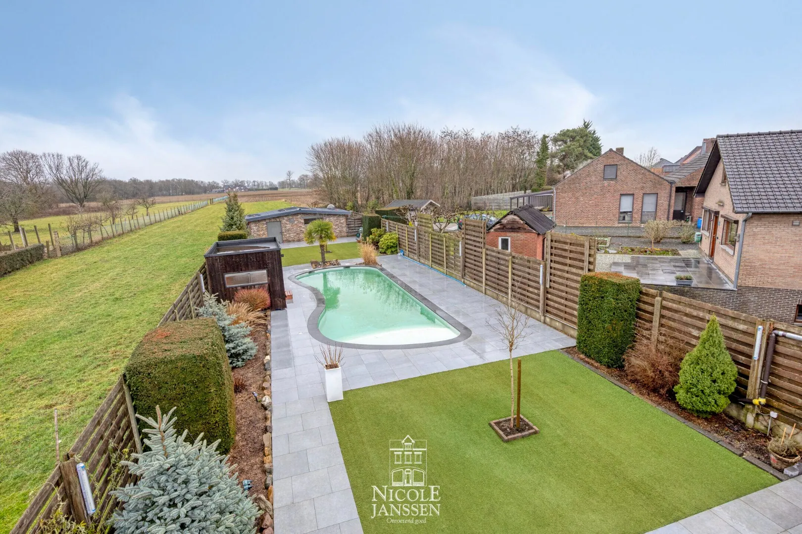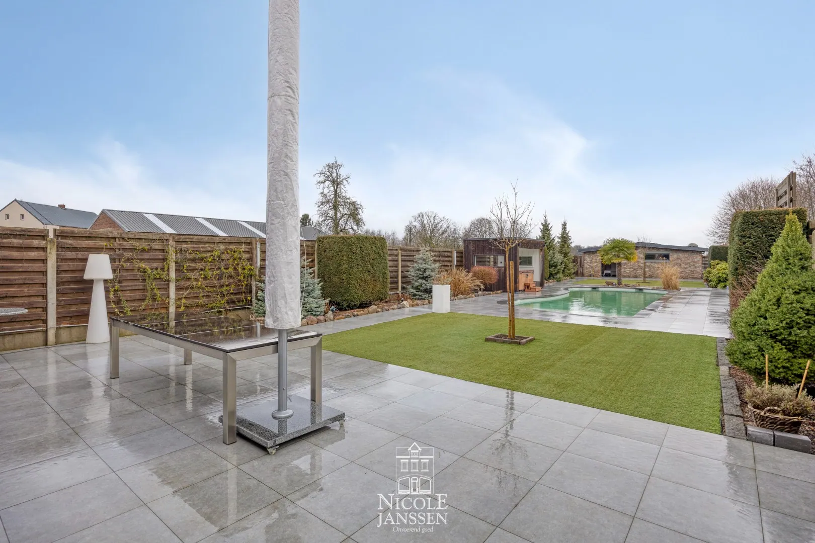 -- Tuin: zwembad, bijgebouw en garage. lees meer lees minder