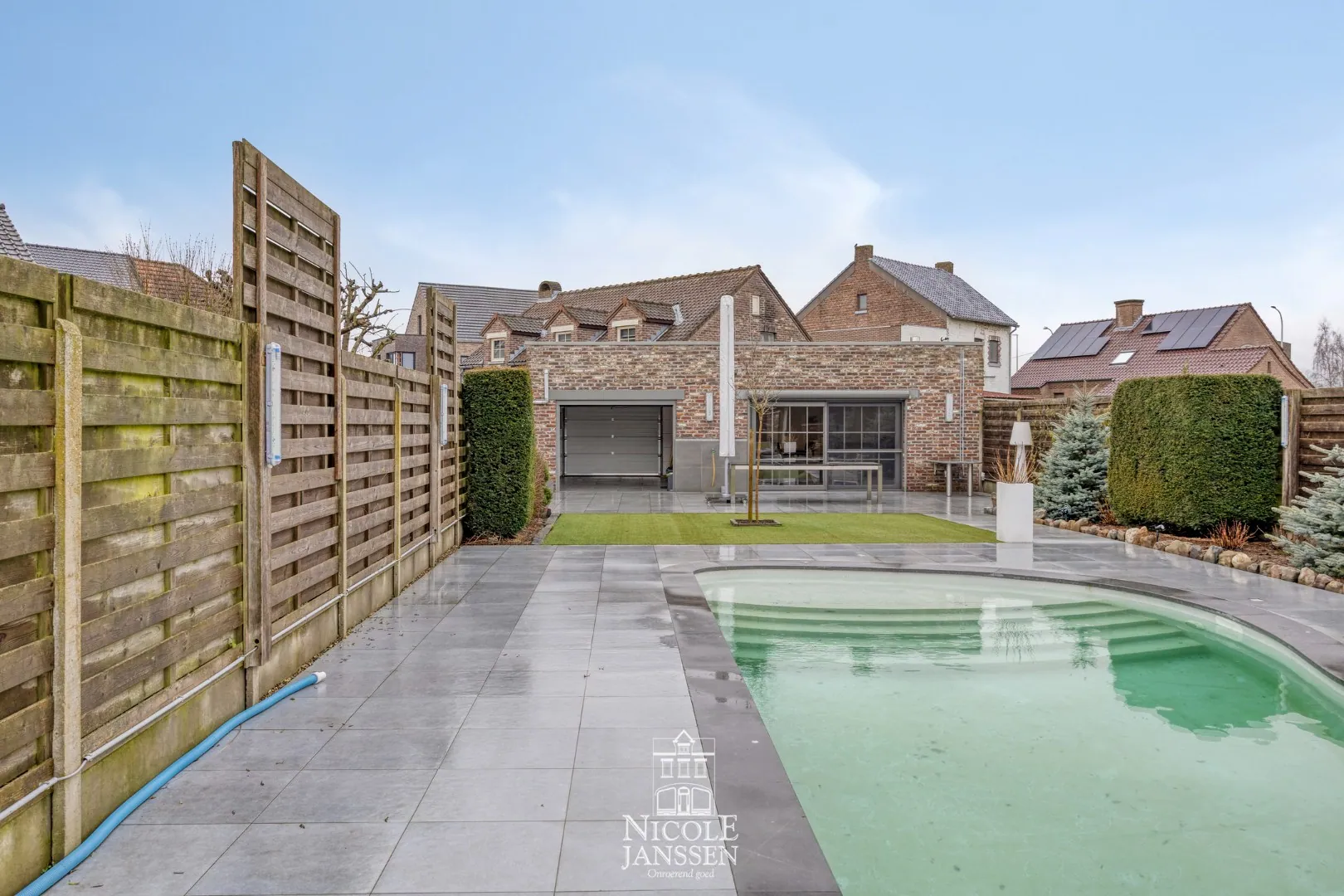 Deze instapklare gezinswoning maakt gelijkvloers wonen mogelijk en is afgewerkt met zeer degelijke en kwalitatieve materialen. Het verwarmd zwembad laat u extra lang genieten van vakantie aan huis in deze mooi aangelegde tuin waar u van veel privacy kan genieten.