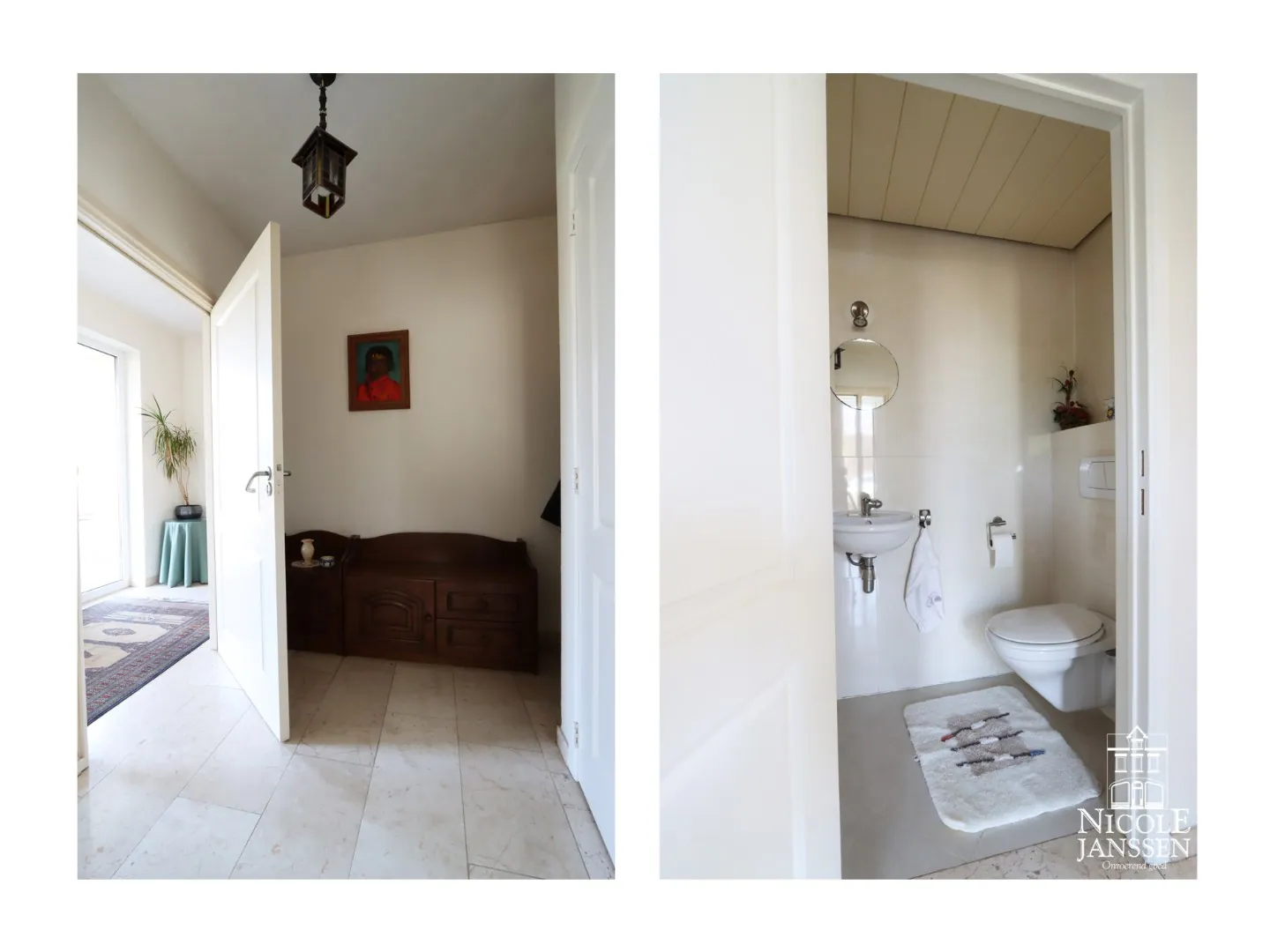 - Ook is deze hal voorzien van een volledig betegeld gastentoilet met fonteintje