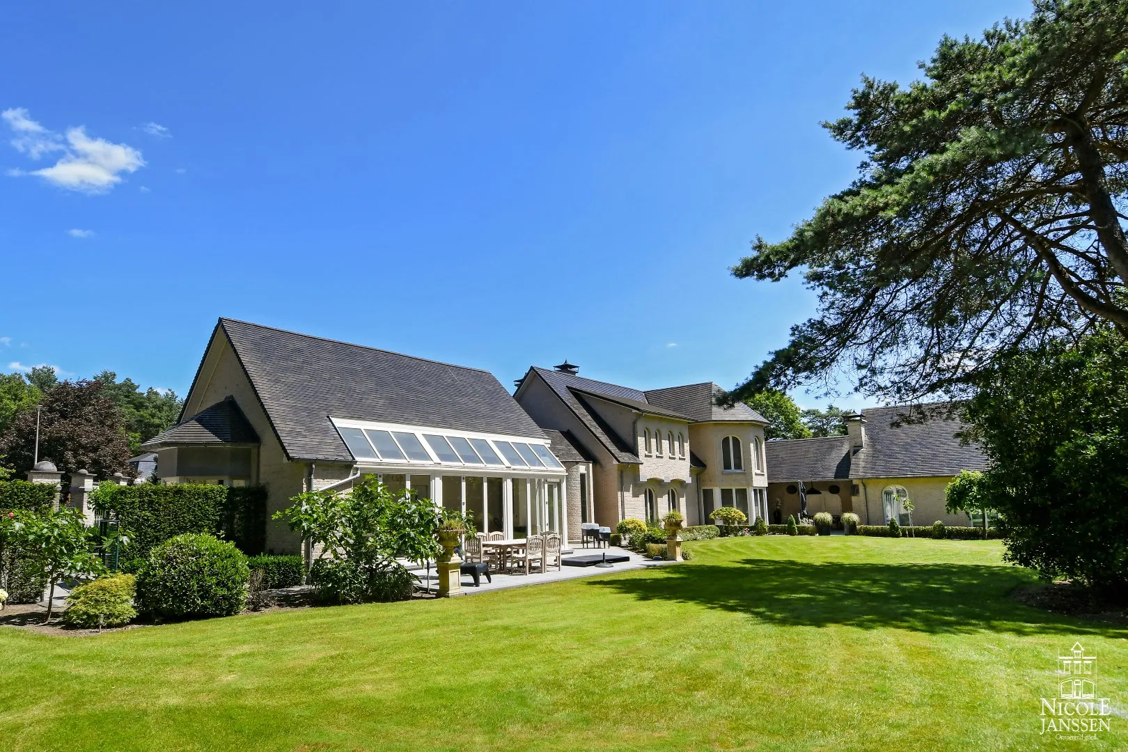 Luxueus landhuis met apart kantoorgedeelte, te bereiken via een eigen ingang. De mooi aangelegde tuin rondom, de gezellige terrassen en het binnenzwembad zijn maar enkele van de troeven. Deze villa ligt op een prachtig hoekperceel omgeven door veel groen en te bereiken via twee straten. De ...