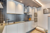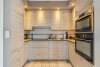 - Keuken met koelkast, oven, microgolfoven, kookplaat en afzuigkap