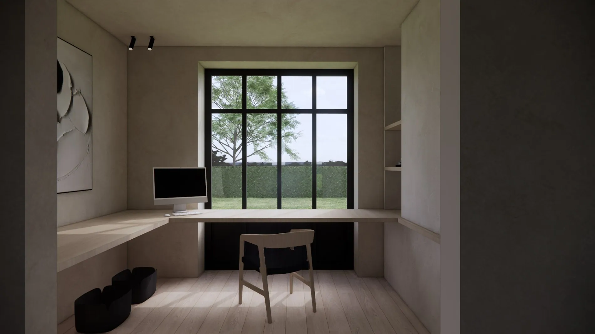 De woning in houtskeletbouw wordt casco plus afgewerkt.